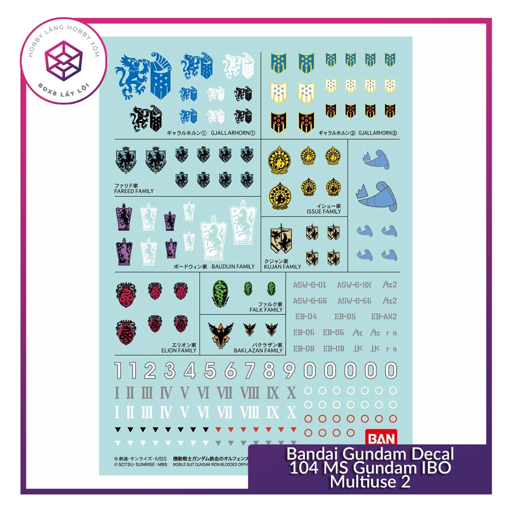 Decal mô hình Bandai Gundam Decal 104 MS Gundam IBO Multiuse 2 [TAM]