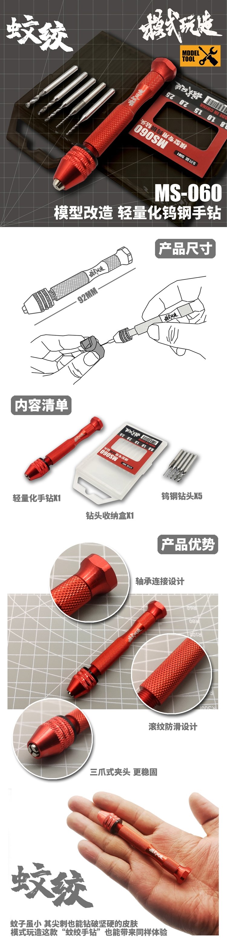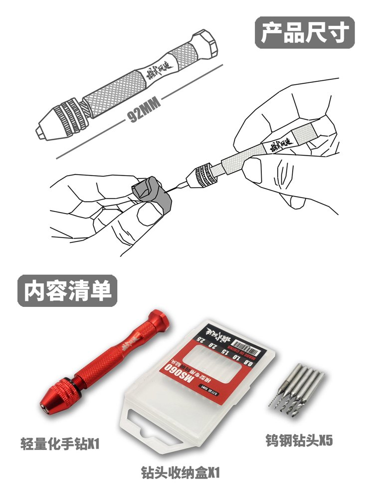 + 5 đầu mũi các cỡ: 0.8mm, 1.0mm, 1.5mm, 2.0mm, 2.5mm